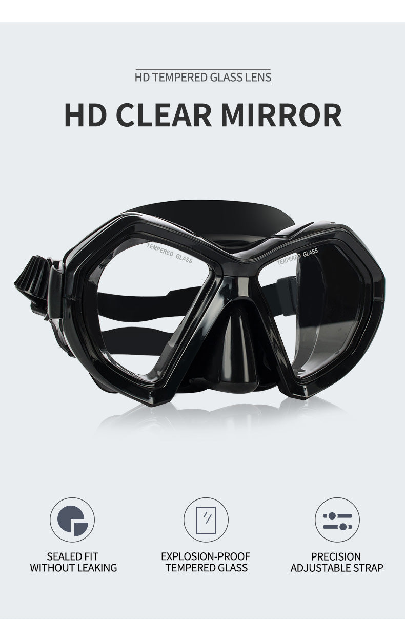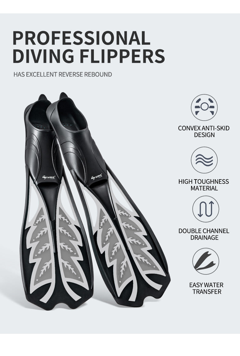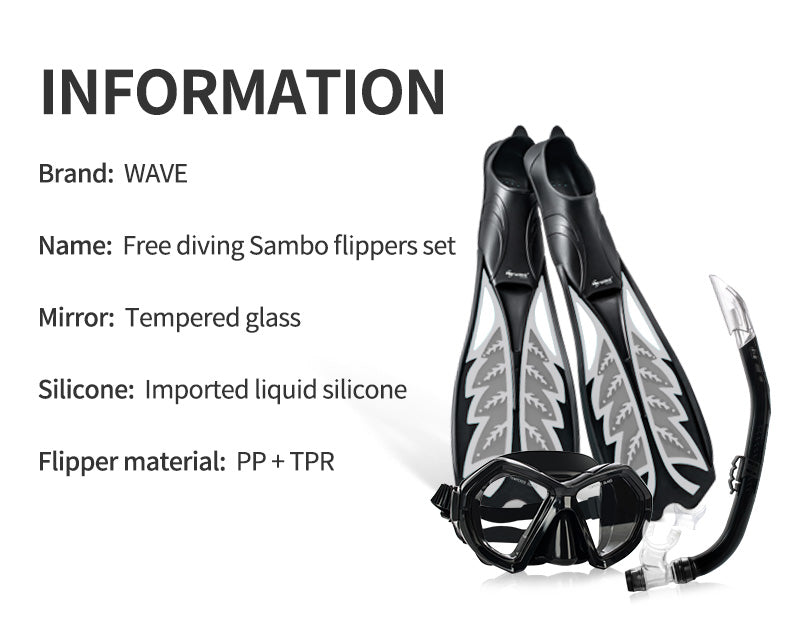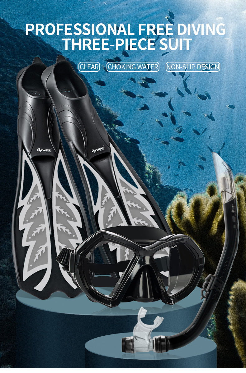 Wave HD Adjustable Mask Free Diving Snorkel Combo Flippers Set Silver Blue