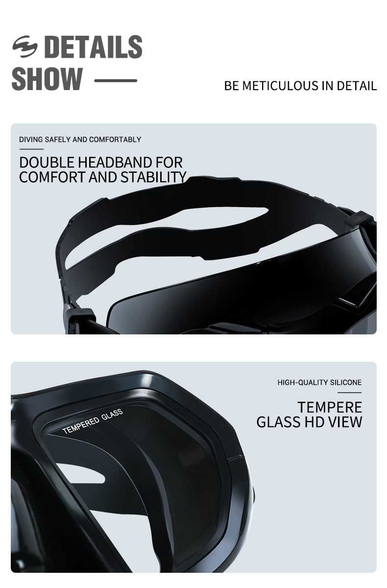 Professional Scuba Snorkel Mask Set Freediving Silicone Swimming & Diving Equipment